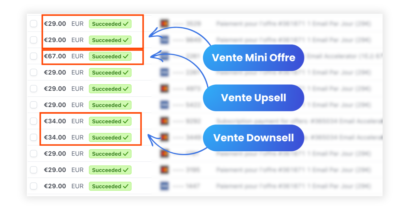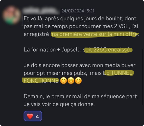 Et à la suite de notre Mini Offre en email copywriting à 29€, on vend un programme sur les tunnels de vente à 1497€, et ça marche très bien...