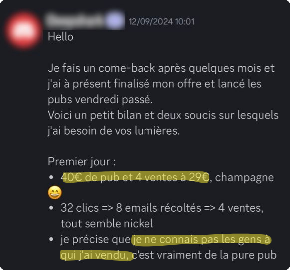 Avec une mini offre couplée à de la publicité, des centaines de personnes te découvrent chaque jour, indépendamment de l’algorithme des réseaux sociaux.