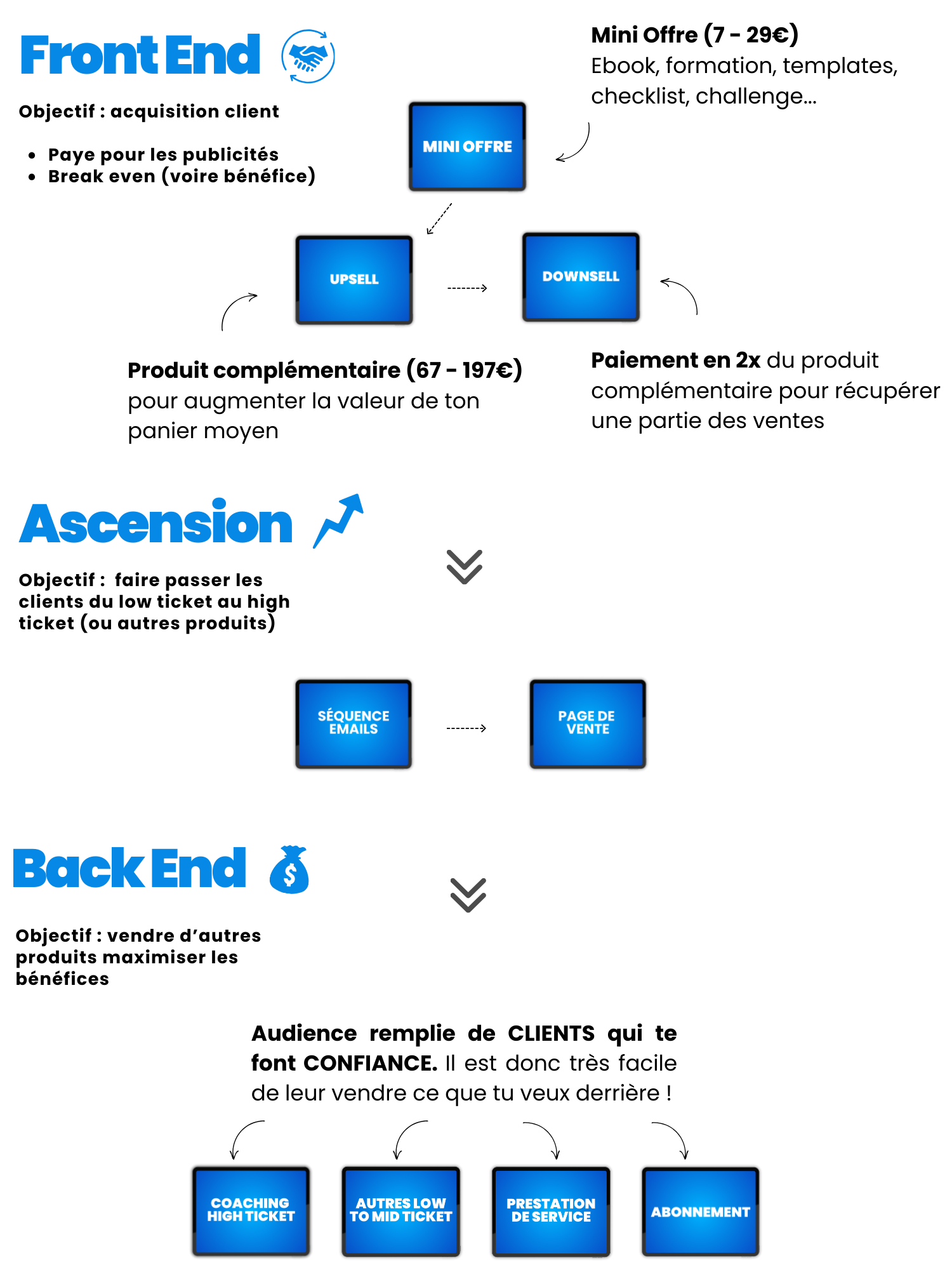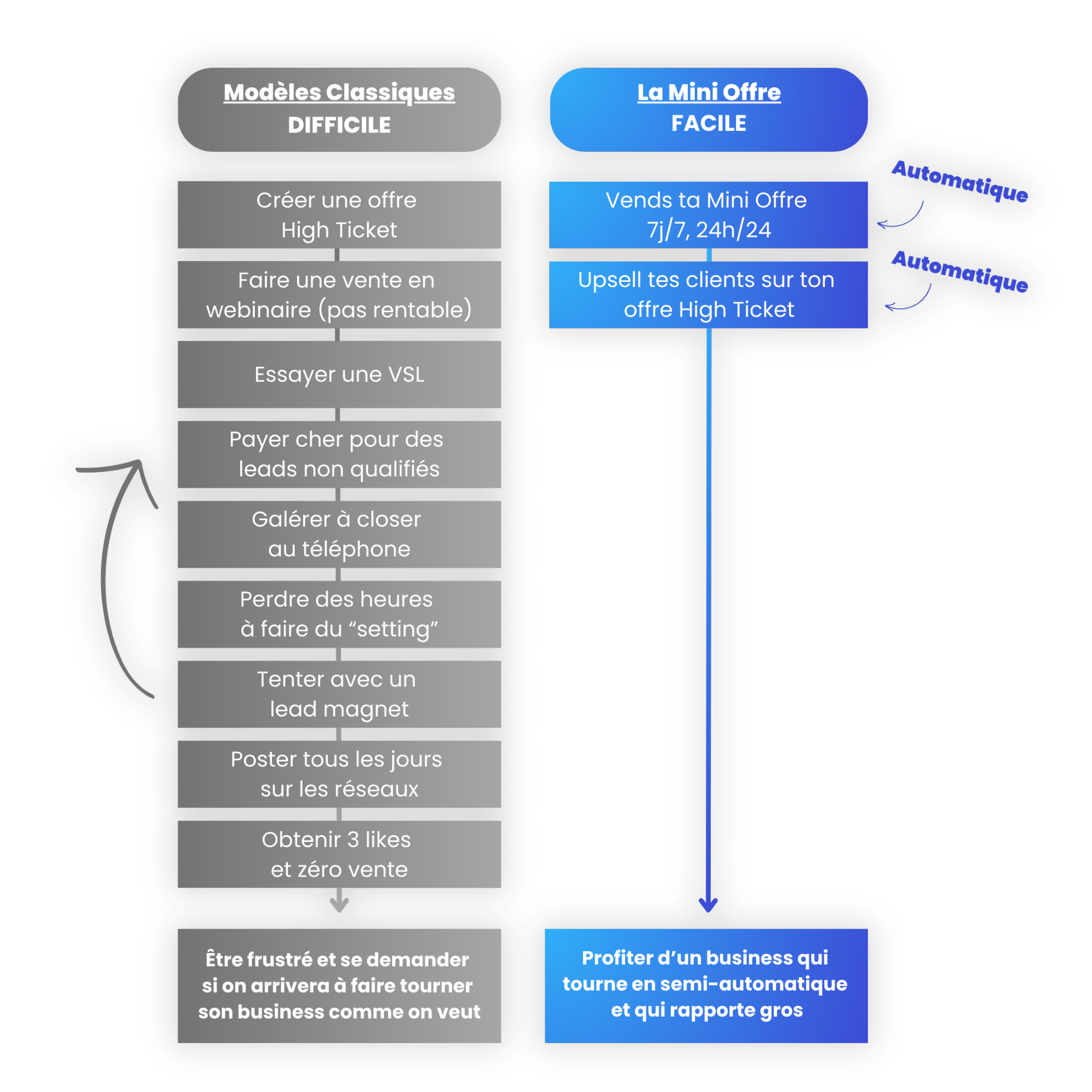 Une fois qu’ils sont satisfaits de ta Mini Offre, la confiance est là et leur vendre une offre High Ticket devient beauuucoup plus facile.