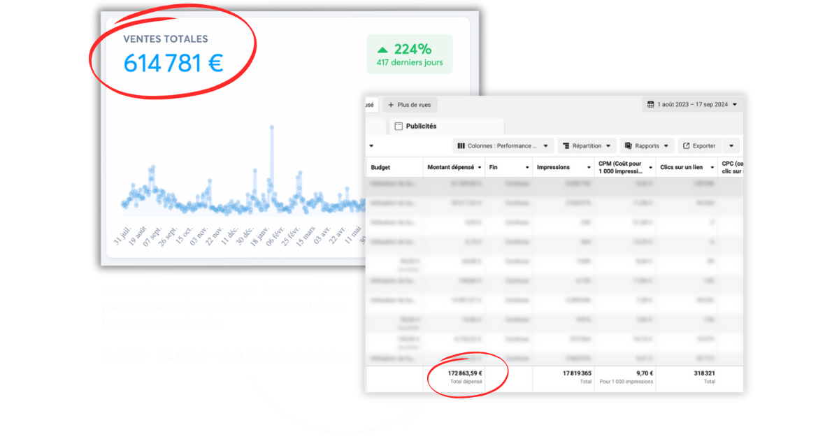 Tu gagnes chaque jour de 10 à 30 nouveaux clients, le petit produit paie ton budget pub (et même t'apporte du bénéfice) et tu n'as même plus à ramer pour vendre ton produit Hight Ticket…