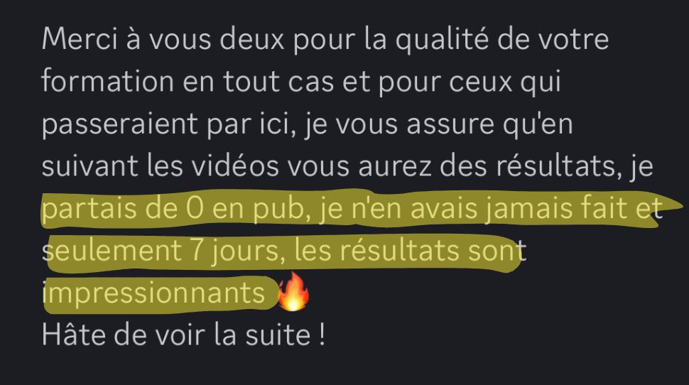 Et dans La Mini Offre Academy, on a inclus un Tuto Complet de A à Z pour lancer tes premières pubs en quelques clics même si tu n'as jamais touché aux publicités de ta vie :