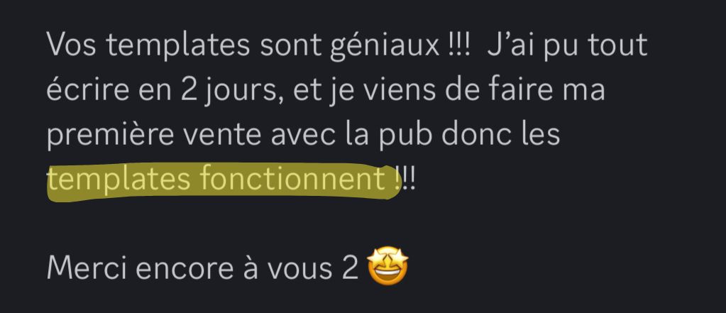 Aucun problème ! Dans La Mini Offre Academy on te fournit TOUS les templates éprouvés dont tu as besoin pour gérer ton business :