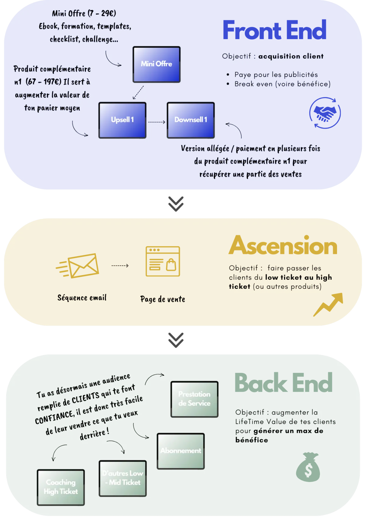 Une fois qu’ils sont satisfaits de ta Mini Offre, la confiance est là et leur vendre une offre High Ticket devient beauuucoup plus facile.