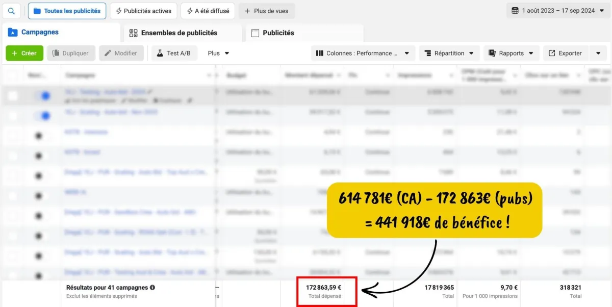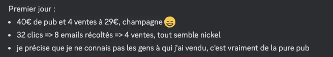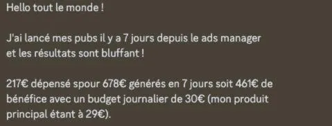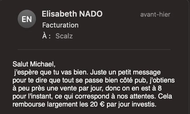 En plus, tu peux te lancer avec seulement 20€ de budget par jour et avoir des résultats.