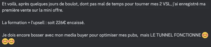 En gros, si tu suis bien notre méthode et que tu n’abandonnes pas, il n’y a aucune raison pour laquelle tu n’arriverais pas à avoir un tunnel Mini Offre rentable toi aussi.