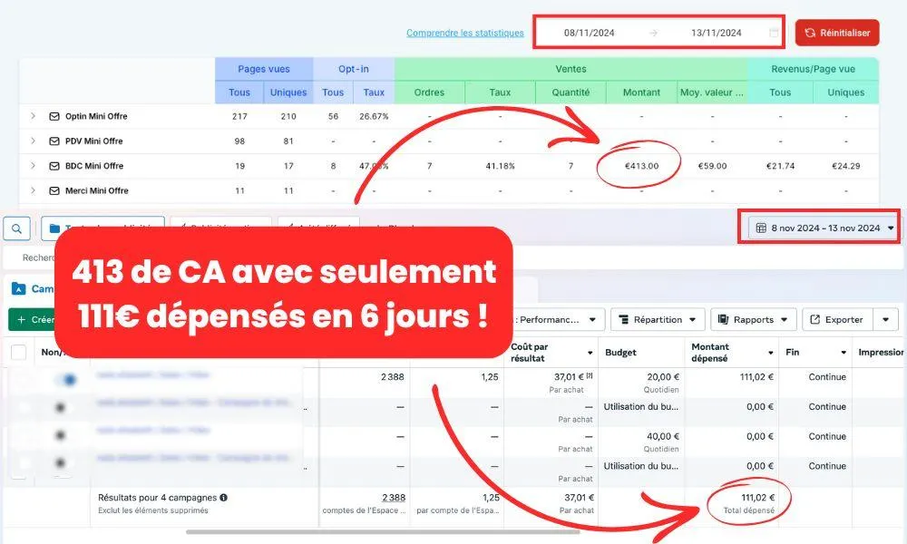 Ta Mini Offre paye tes publicités (dans de nombreux cas, tu fais même du bénéfice), ce qui signifie que tes ventes High Ticket sont 100% bénéfices !